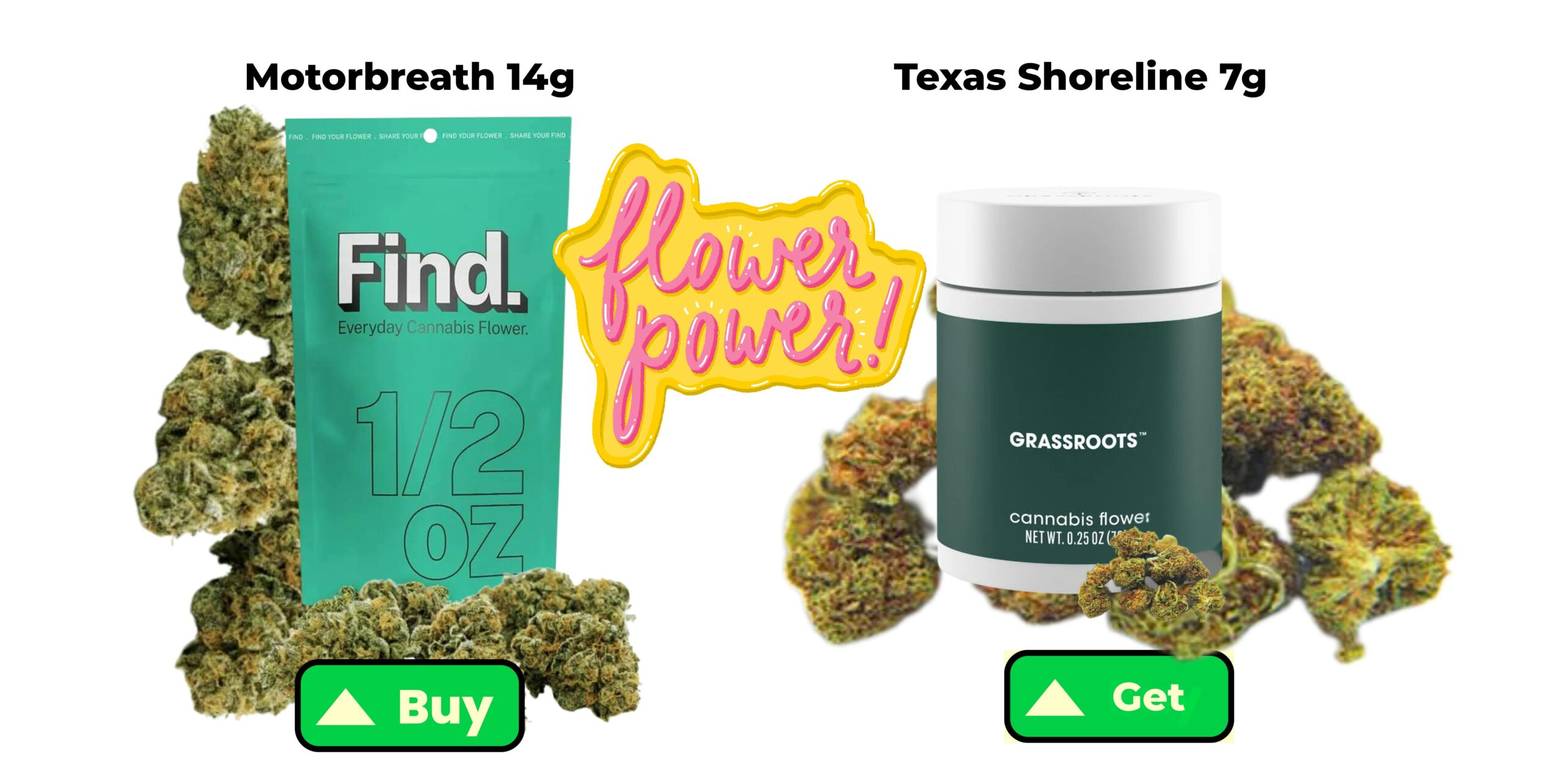 Get more from your flower with our Flower Power deal. For every Curaleaf Find Motorbreath 14g purchased, you’ll receive one Curaleaf Grassroots Texas Shoreline 7g free. Double the strains, double the satisfaction—while supplies last.