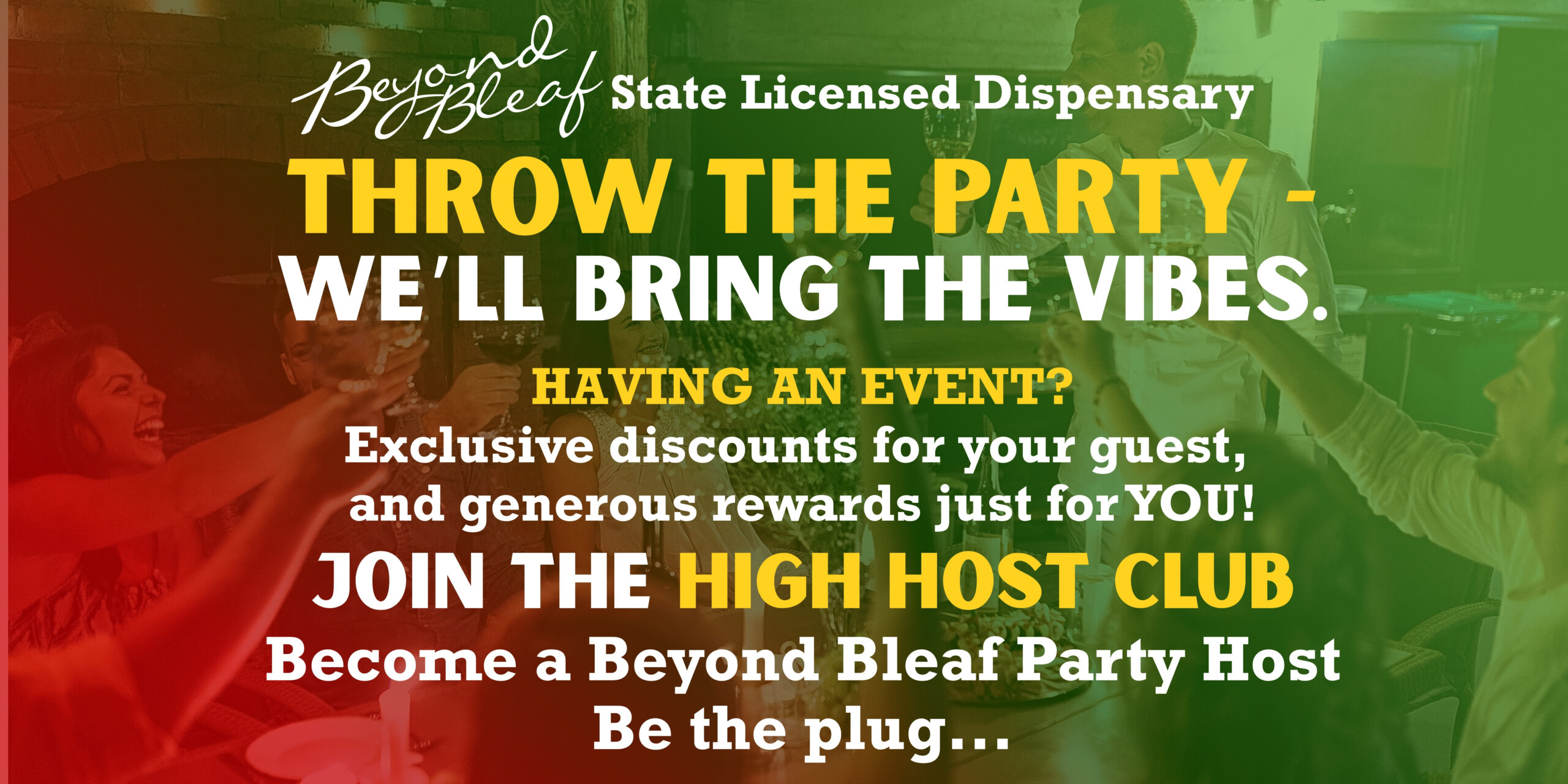 You throw the party – we bring the vibes – you be the plug! Find out how you and your guest can get major discounts by becoming a High Host!